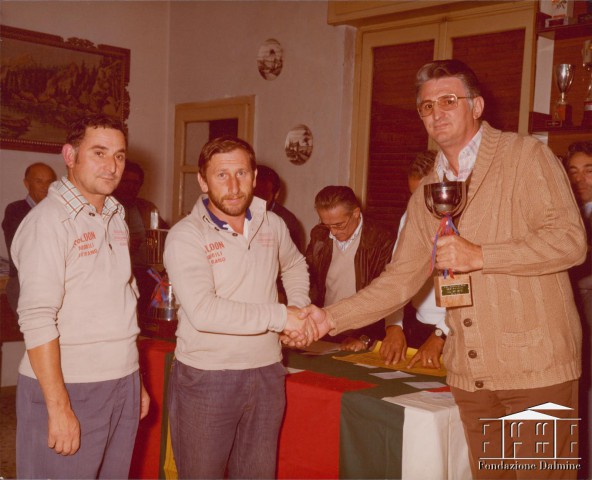 Premiazione del torneo di bocce a coppie del 2° Trofeo Milano assicurazioni autoveicoli. 1977