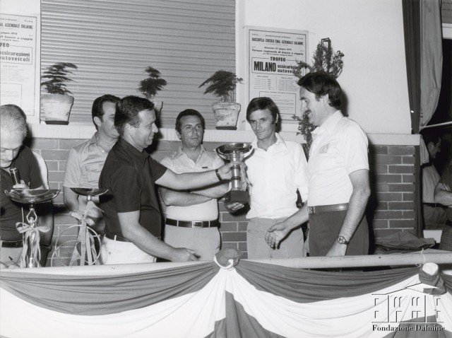 Premiazione del torneo regionale di bocce a coppie del Trofeo Milano assicurazioni autoveicoli. 1976