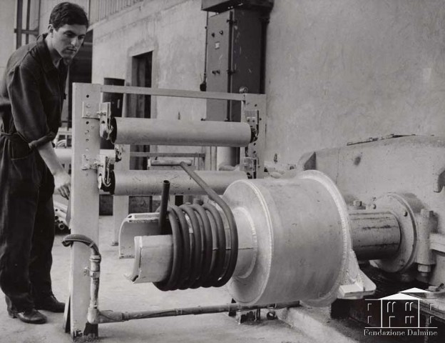 In questa fotografia, in particolare, il lavoratore sta eseguendo la curvatura a spirale di un tubo.