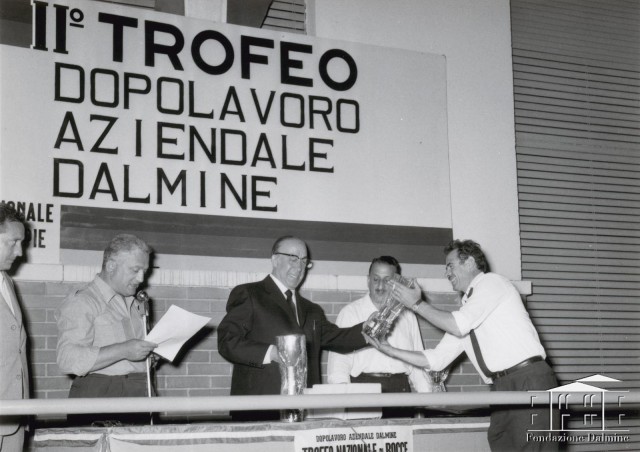 Premiazione del torneo nazionale di bocce a coppie del 2° Trofeo dopolavoro aziendale. Anni '70